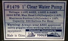 Harbor freight 1479 1 2hp centrifugal clear water pump with 1in.